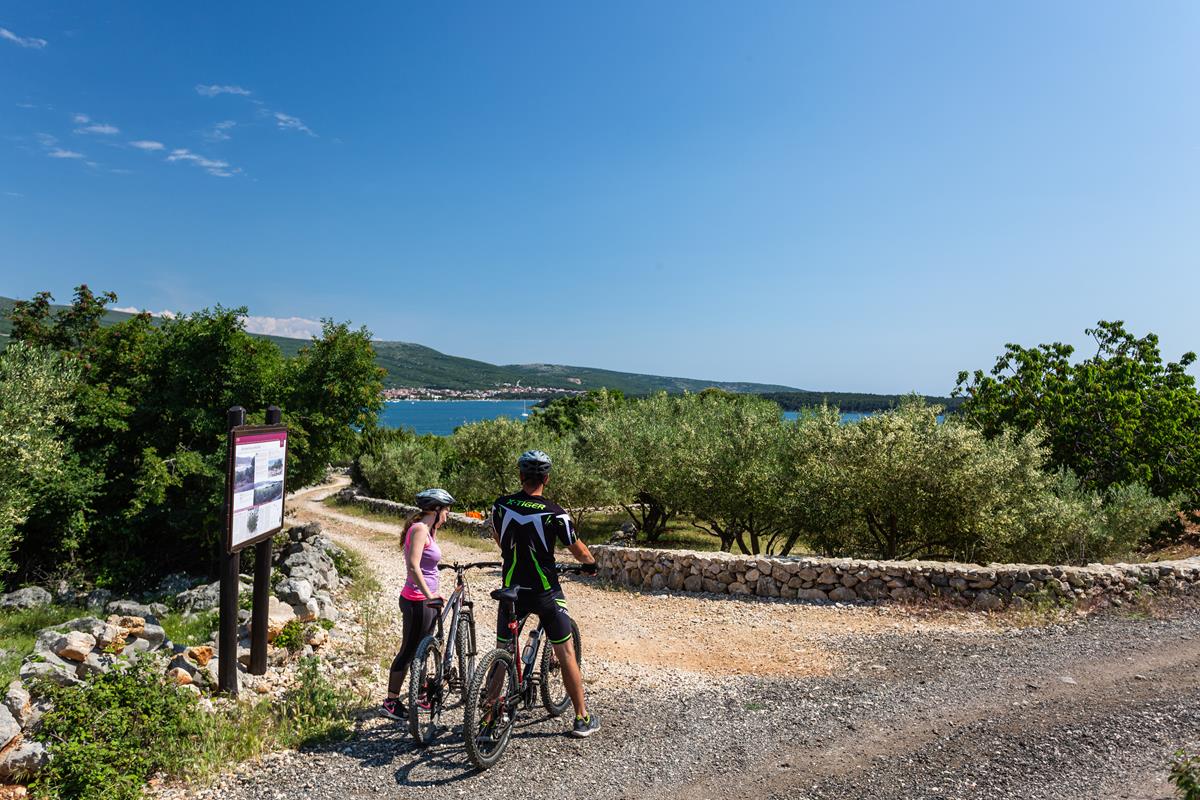 Jedinstveni spoj edukacije i rekreacije zaokupit će sve bicikliste koji se odvaže provesti sjevernim zaleđem grada Krka. Ova ne odveć zahtjevna MTB staza polazi iz Krka, a većim dijelom prati obuhvat informativnim tabelama obilježene edukativne šetnice Putovima zlatnih kapi krčkog blaga posvećene maslinama, otočnom maslinarstvu i maslinovom ulju.