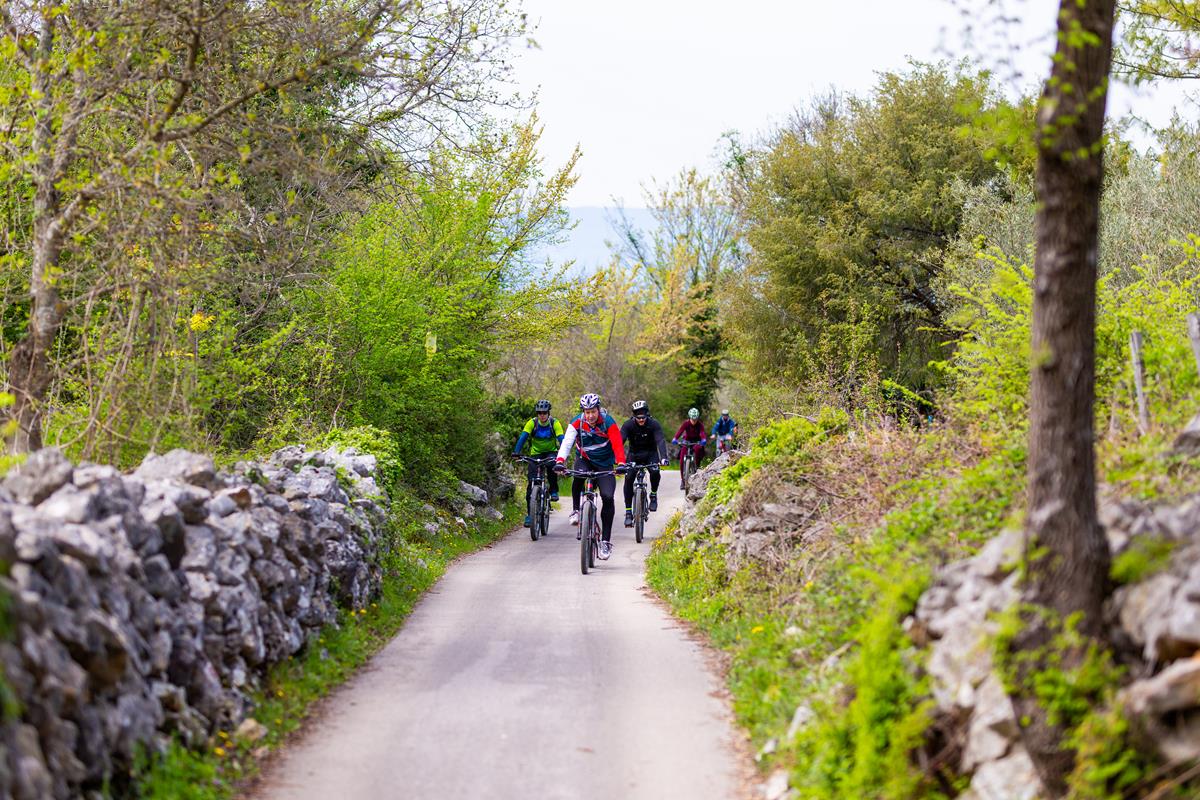 Staza prati makadamsku cestu prema selima Sužan, Rasopasno, Gabonjin i Kars do samog središta otoka Krke . Vožnja asfaltom, makadamom i singletrackom vodi do općinskog sjedišta Dobrinje, nakon čega slijedi spust do prekrasnog turističkog mjesta Šilo , perjanice turizma u ovom dijelu otoka Krka. Ruta započinje povratkom u Hlap i spustom prema uvalama Soline i Čižići .