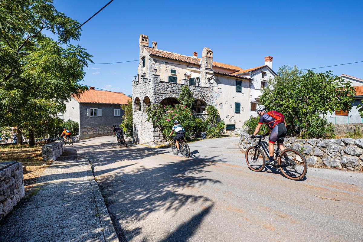 he trail then scales a green oasis of holly oaks around Glavotok and then traverses a downy oak forest towards the northeast in the direction of Čavlena Bay, while passing through Dolinja Drmun Puški, where the largest, oldest and most famous island oak reigns supreme. This amazing 400-year-old tree stands out with a height of 20 metres, a crown diameter of 30 metres and a trunk circumference exceeding five metres. Arriving at the coast, you follow it all the way to the nearby bay and modest port of Čavlena, where cyclists can rest and admire the view of the Srednja Vrata channel and the western coast of the neighbouring Cres Island. After resting, the trail leads through lush vegetation in a pleasant shade through the villages of Poljica, Milohnići and Brzac, which have preserved their original layout typical of smaller island settlements and recognisable for the rows of compact stone houses lining the local roads.