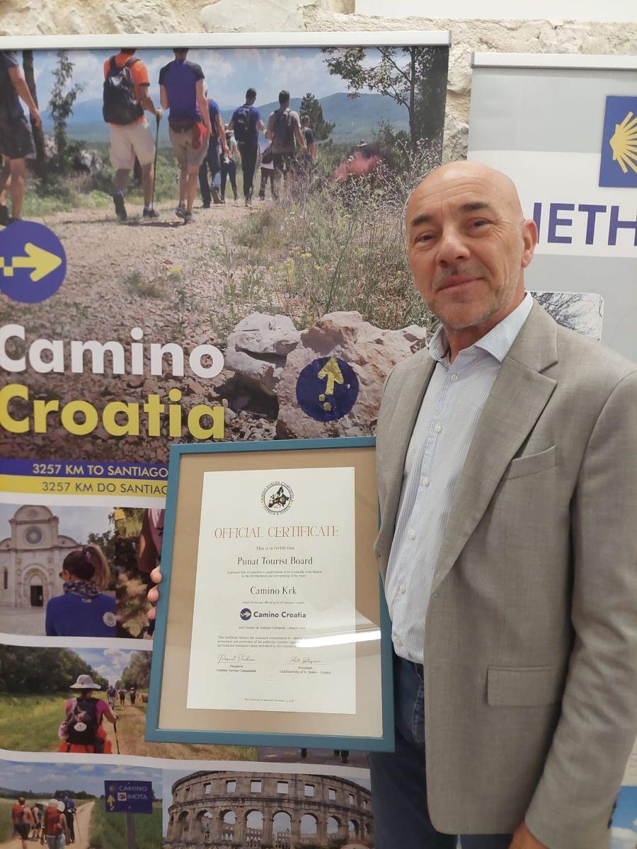 During the festival’s ceremony, the certificate recognizing Camino Krk as part of the official European Camino network was accepted by Branko Karabaić, director of the Punat Tourist Board, on behalf of all the tourist boards of the Island of Krk involved in the project: City of Krk Tourist Board, The Municipality of Malinska – Dubašnica Tourist Board, the Tourist Board of the Municipality of Omišalj, Tourist Board of the Baška Municipality, Dobrinj Municipality Tourist Board, Tourist Board of the Municipality of Vrbnik, and the Punat Tourist Board.