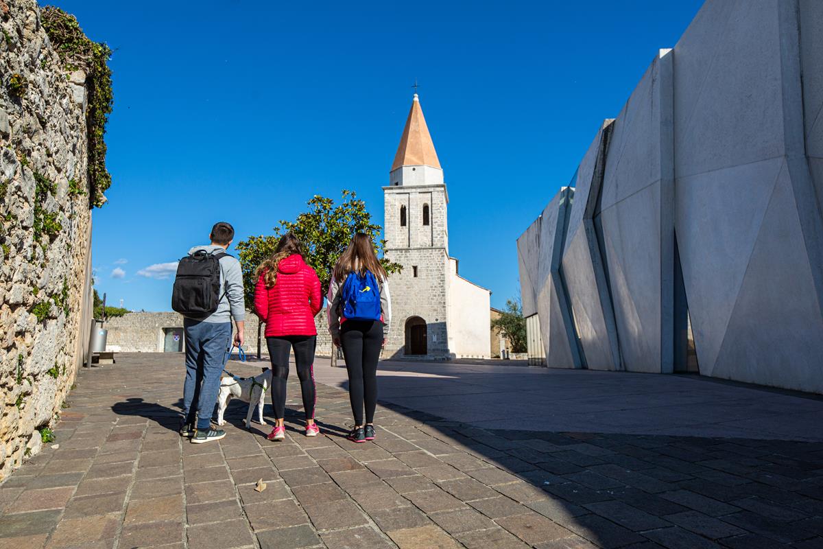 U srcu starogradske jezgre Krka prošećite uskim kamenitim ulicama i posjetite vrijedne spomenike kulturne i povijesne baštine otoka. Gradom dominira veličanstveni kompleks katedrale Uznesenja Blažene Djevice Marije kao i dvojne crkve sv. Kvirina i sv. Margarete, dok njegove vizure krasi impozantan zvonik. Unutar gradskih bedema, koji već više od dva tisućljeća okružuju grad, nalaze se vrijedni primjeri spomeničke i sakralne arhitekture. Na Trgu Kamplin posjetite stari Frankopanski kaštel, rezidenciju plemićke obitelji od povijesnog značaja, koji su naraštaji krčkih knezova gradili od 12. do 15. stoljeća. Nakon posjeta kaštelu, starogradske uličice prolaze pokraj Interpretacijskog centra pomorske baštine otoka Krka i vode do Gornjih gradskih vrata koja čuvaju dva vrijedna kompleksa, franjevački i benediktinski samostan te prvu romaničku crkvu u gradu – Gospu od Dobrog Zdravlja. Jedna od najljepših krčkih ulica koja se proteže uz zidine benediktinskog samostana spušta se prema Veloj placi, glavnom gradskom trgu okruženom brojnim znamenitostima, uglavnom iz antičkog razdoblja.