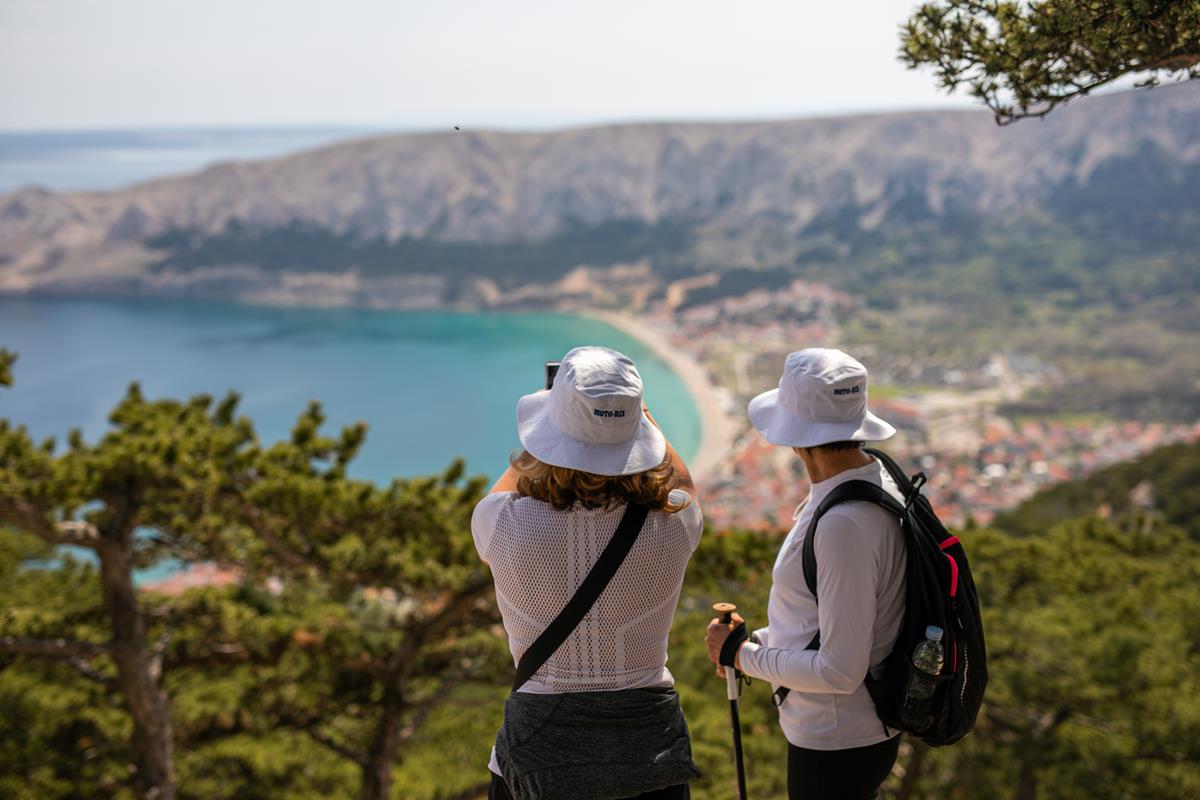 Jedna od najatraktivnijih i najpopularnijih pješačkih staza Baške „Put ka Mjesecu“ kreće iz samog centra mjesta te se najprije uzdiže uskom asfaltnom cestom u serpentinama do nekadašnjeg bašćanskog kaštela i crkve sv. Ivana Krstitelja. Pored crkve i mjesnog groblja zastanite na vidikovcu odakle su snimljene neke od najprepoznatljivijih fotografija Baške, s pogledom na Bašćansku dolinu, otok Prvić, morsko plavetnilo i Velu plažu. Zavirite i u ostatke ruševne crkve sv. Duha iz 13. stoljeća te nastavite širokom i dobro podzidanom stazom koja blago vijuga kroz borovu šumu. Na samoj stazi, koja se nekad zvala Cesta sv. Duha, postavljene su i klupe na kojima možete predahnuti i dodatno se nagraditi pogledom na Bašku i susjedne otoke.